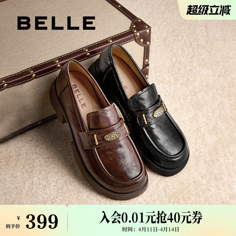百丽元宝厚底乐福鞋子新款软底不累脚黑色小皮单鞋女D2S1DCA5预