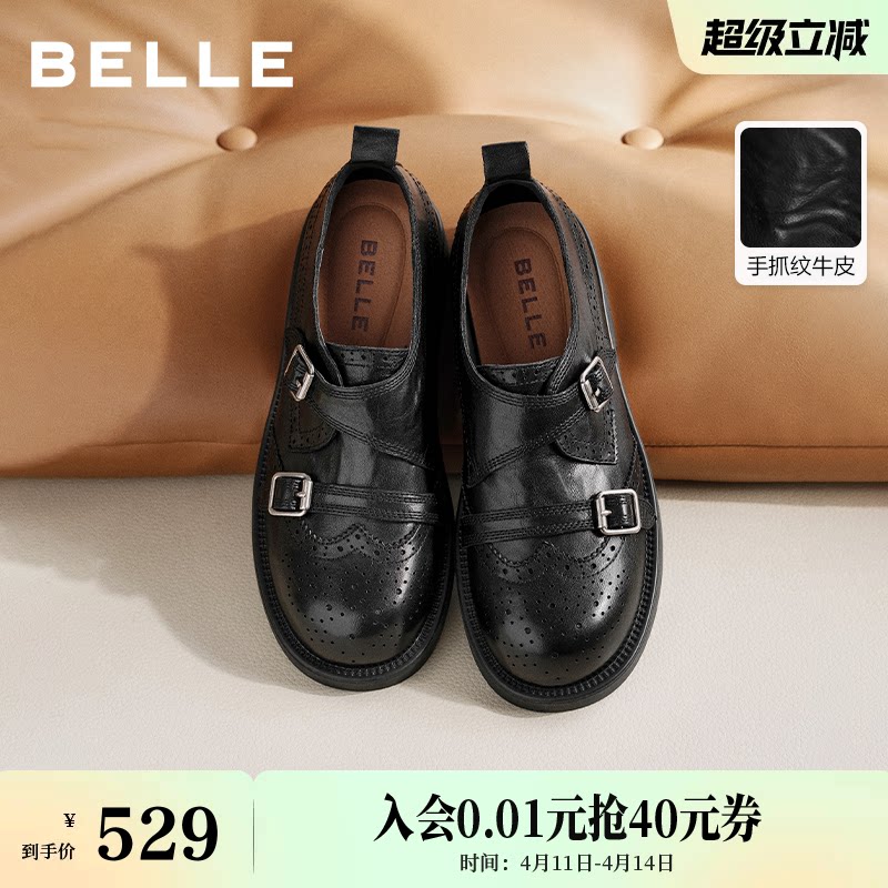 周雨彤同款百丽时光画报厚底增高乐福单鞋女布洛克孟克小皮鞋子预