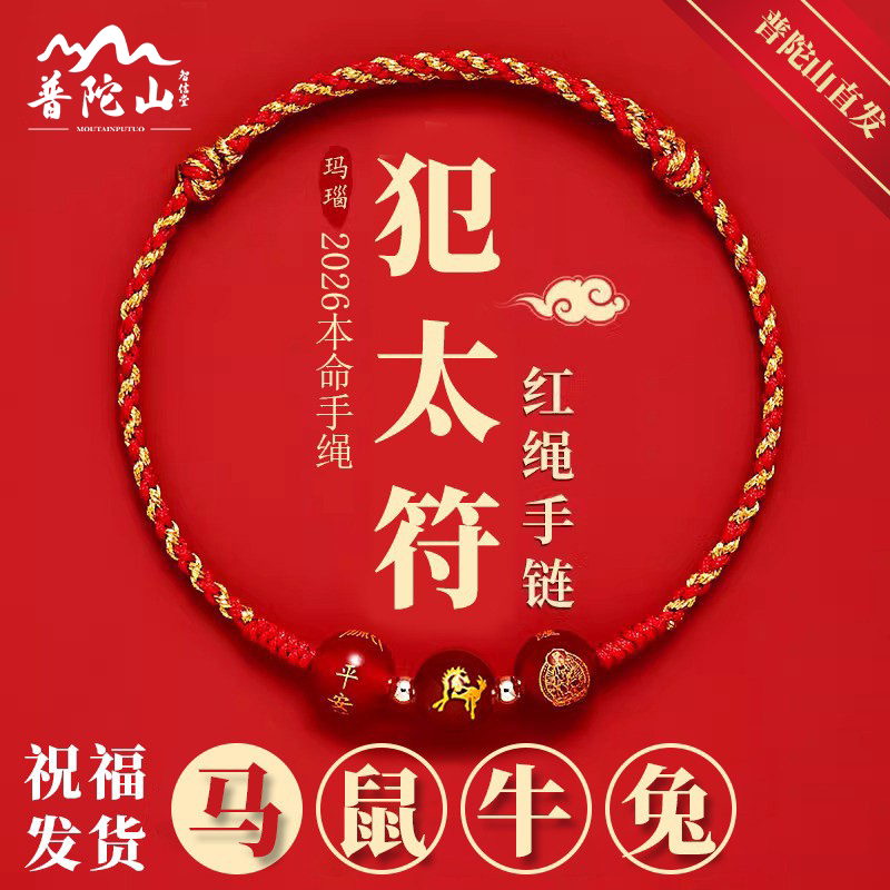 普陀山穿黄金半成品红绳编织手链太岁手绳2026马本命年护身符礼物