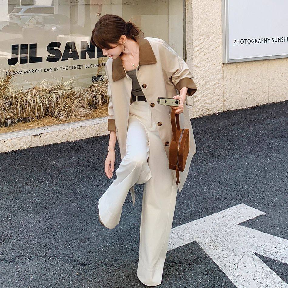 2025春秋中长款垂感名媛风英伦风衣女ins小个子西装外套潮