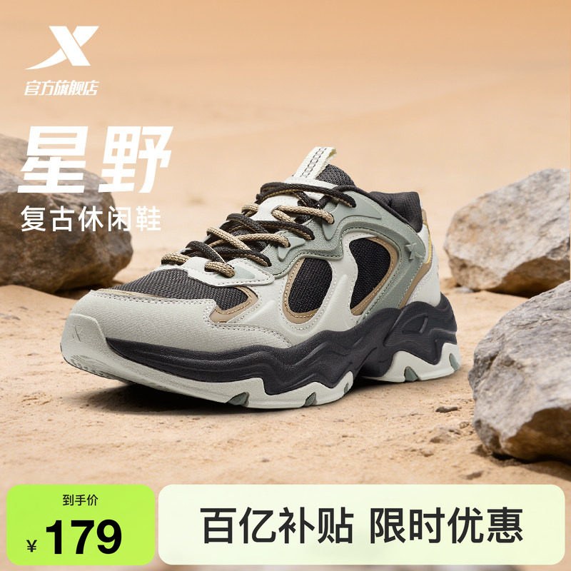 特步星野休闲鞋男鞋夏季新款厚底轻便运动鞋户外鞋复古老爹鞋女鞋