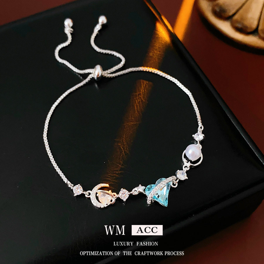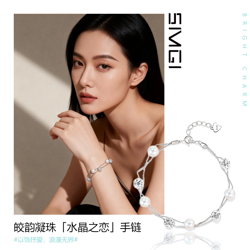 SMGI/珍珠圆珠贝珠手链女韩版水晶之恋手环百搭清新锆石盒子手链