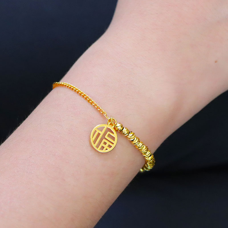 2023年新款越南沙金福牌手链女网红同款韩版小清新细款镀金首饰