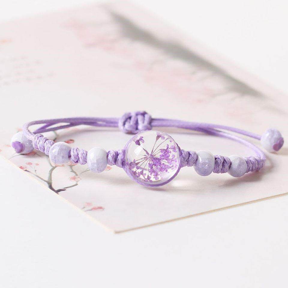 景区新款编织手链玻璃干花手饰蕾丝花清新甜美韩版女生手串送闺蜜