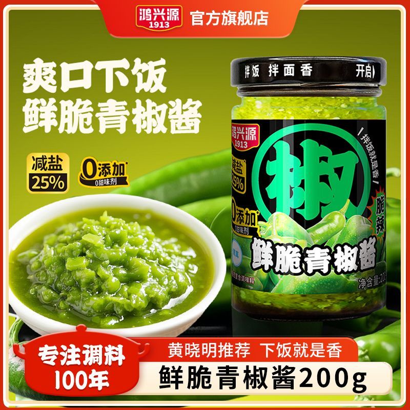 鸿兴源鲜脆青椒酱200g即食下饭菜脆辣椒酱贡菜剁椒酱拌面酱鲜椒酱