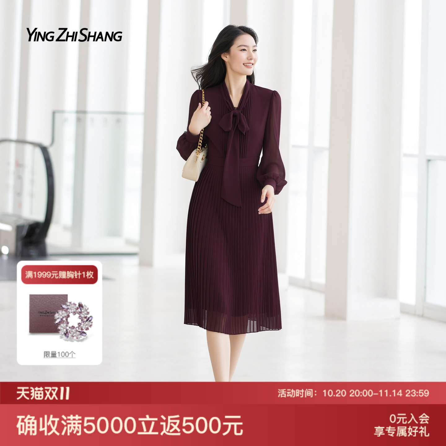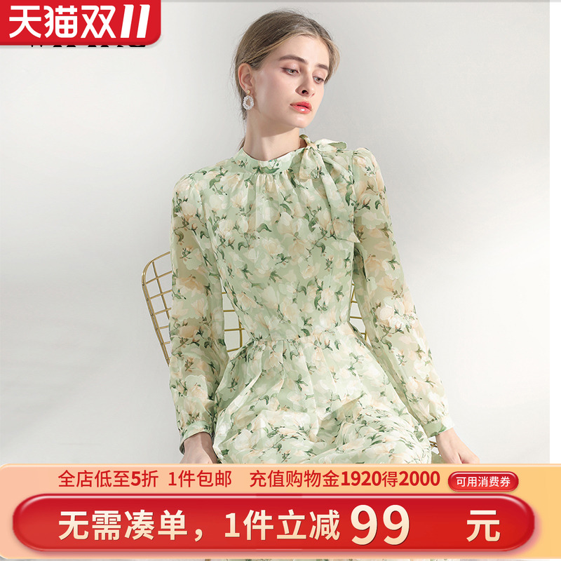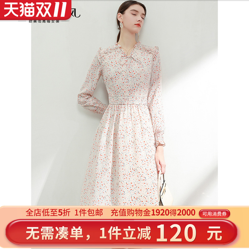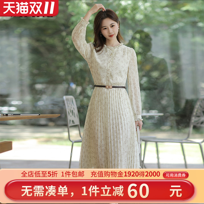 未风小个子裙子女秋新款女装气质显瘦早秋长袖雪纺连衣裙法式长裙