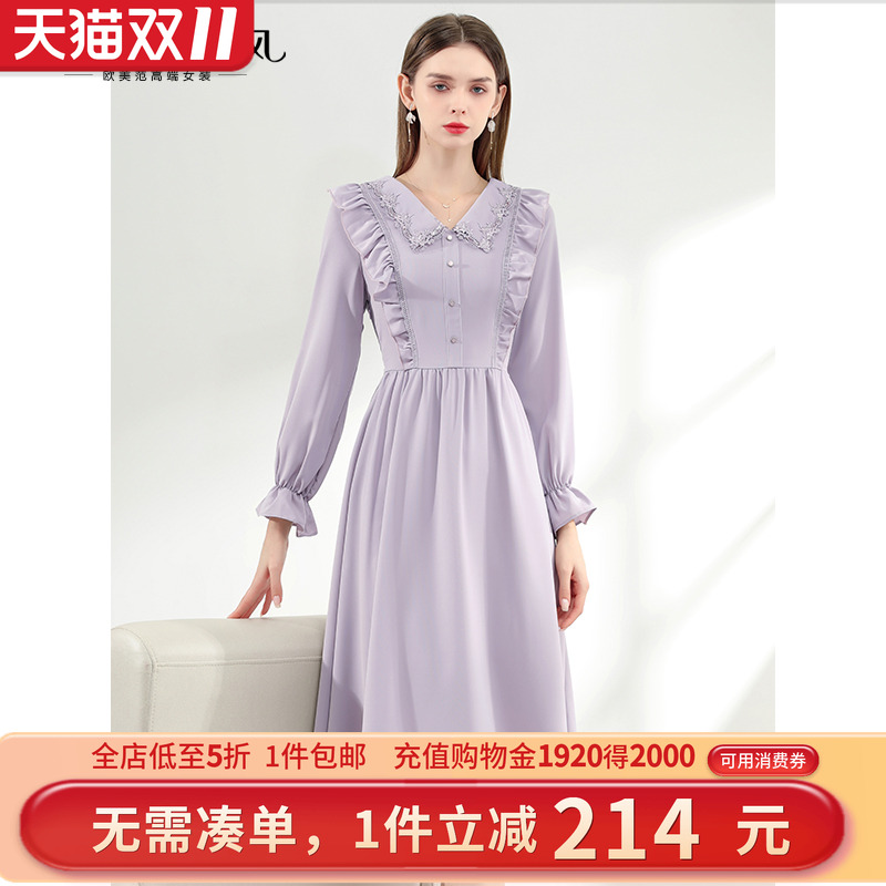 未风紫色雪纺娃娃领连衣裙女秋2025秋装新款女装法式减龄长袖裙子