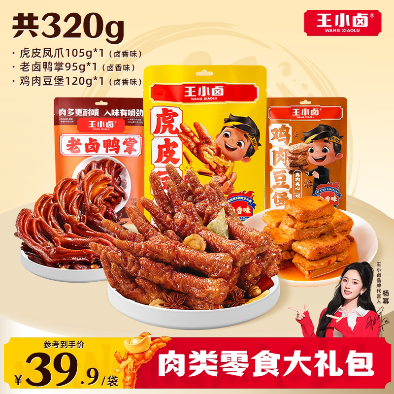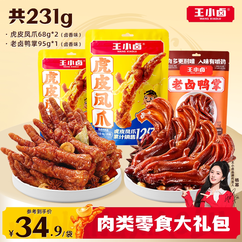 王小卤虎皮凤爪老卤鸭掌鸭爪卤味肉类零食大礼包追剧解馋下酒菜s