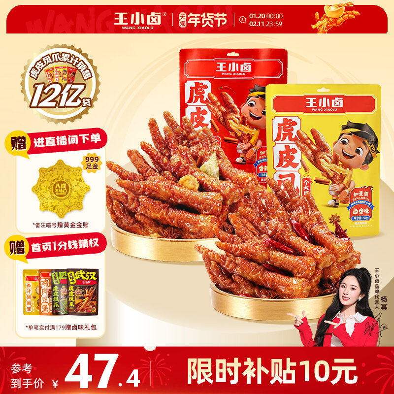 【家庭分享装】王小卤虎皮凤爪210g*2卤味鸡爪肉类解馋年货小零食