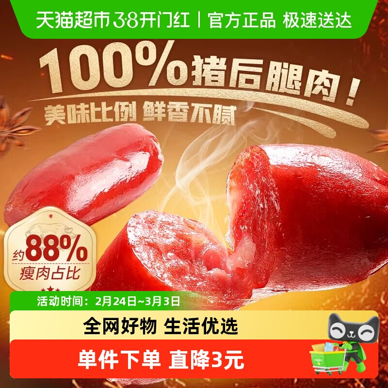 百草味炭烤小香肠60g*1袋烟熏味肉枣烤肠猪肉脯肉类网红休闲零食