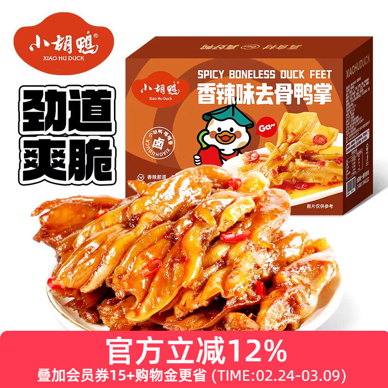 小胡鸭 香辣去骨鸭掌248g无骨鸭爪肉类零食小吃休闲独立包装年货