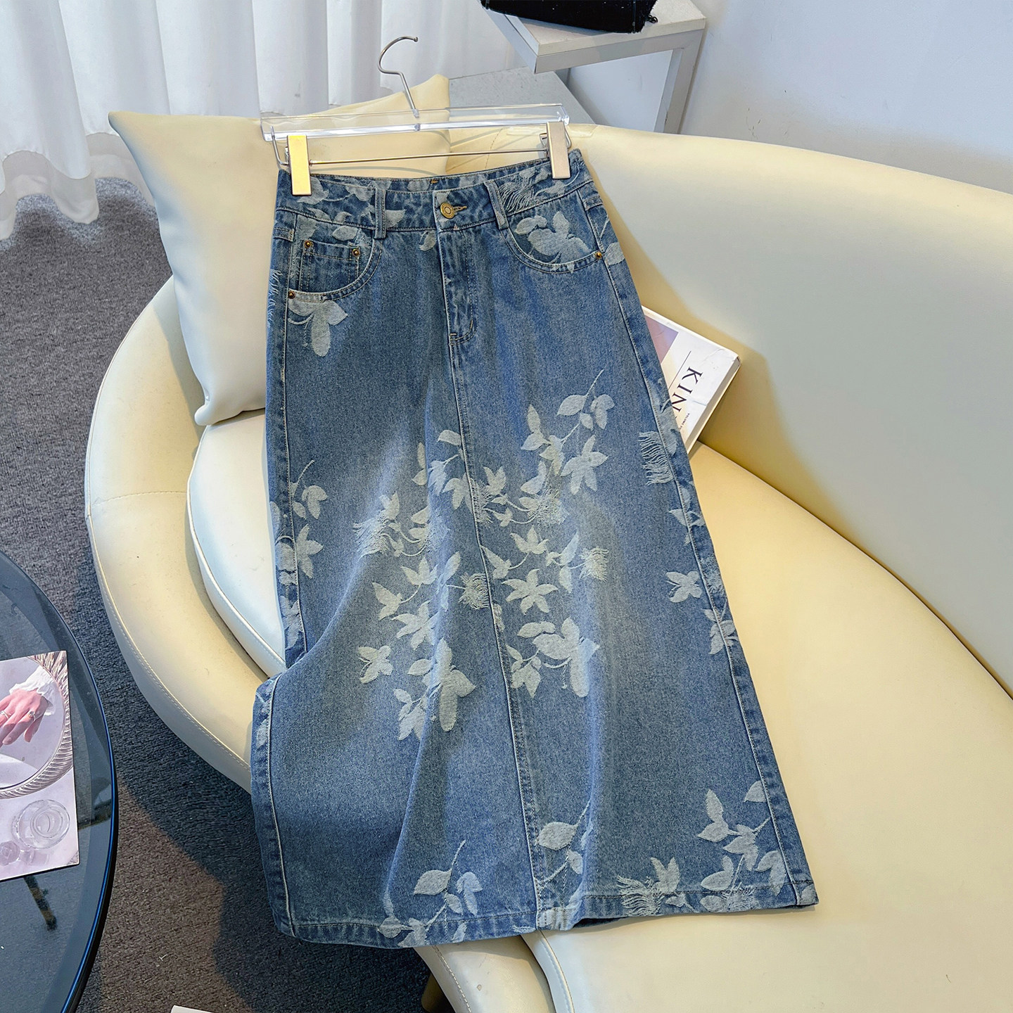 - 高腰 牛仔长裙