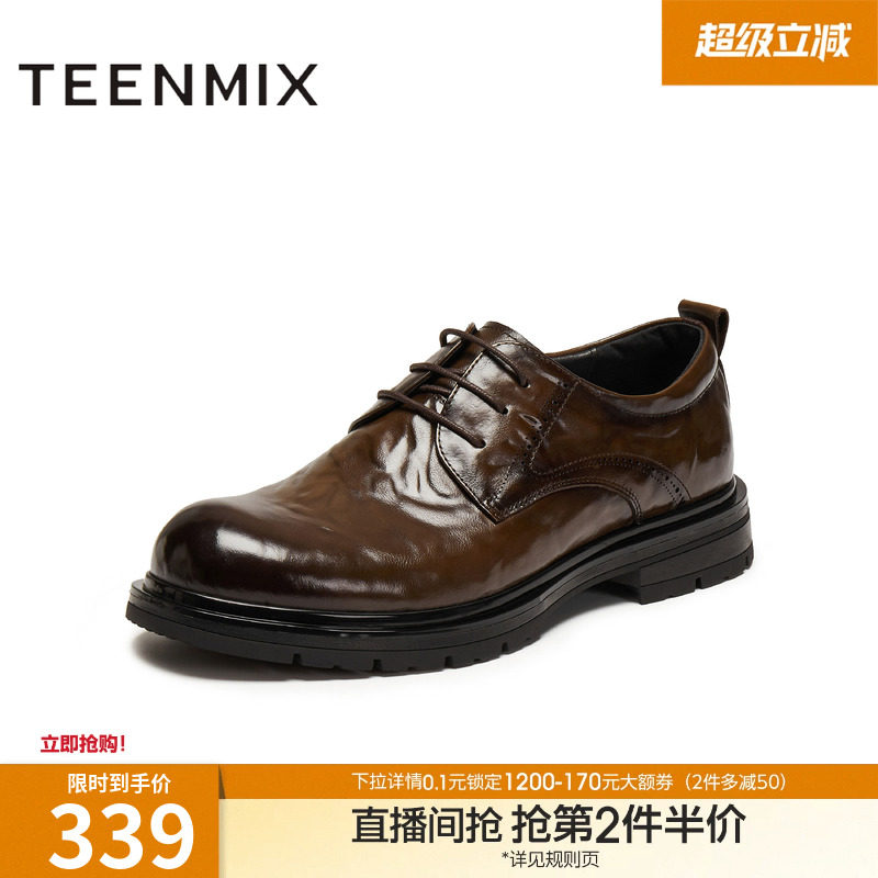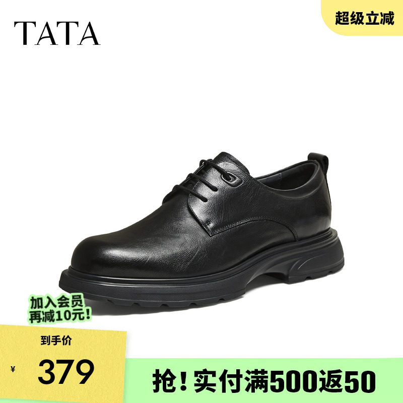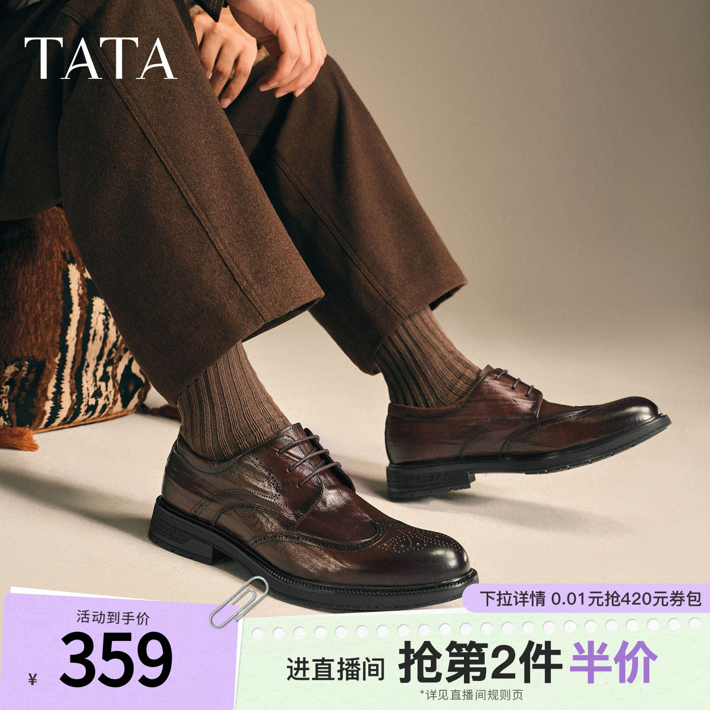 TATA他她男鞋时尚休闲鞋商务正装摔纹皮鞋2025年冬季新款VPV01DM5