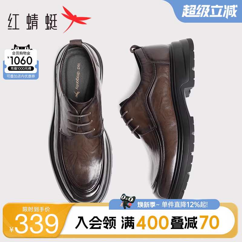 红蜻蜓男鞋秋冬新款商务正装皮鞋男士厚底增高圆头休闲真皮皮鞋男
