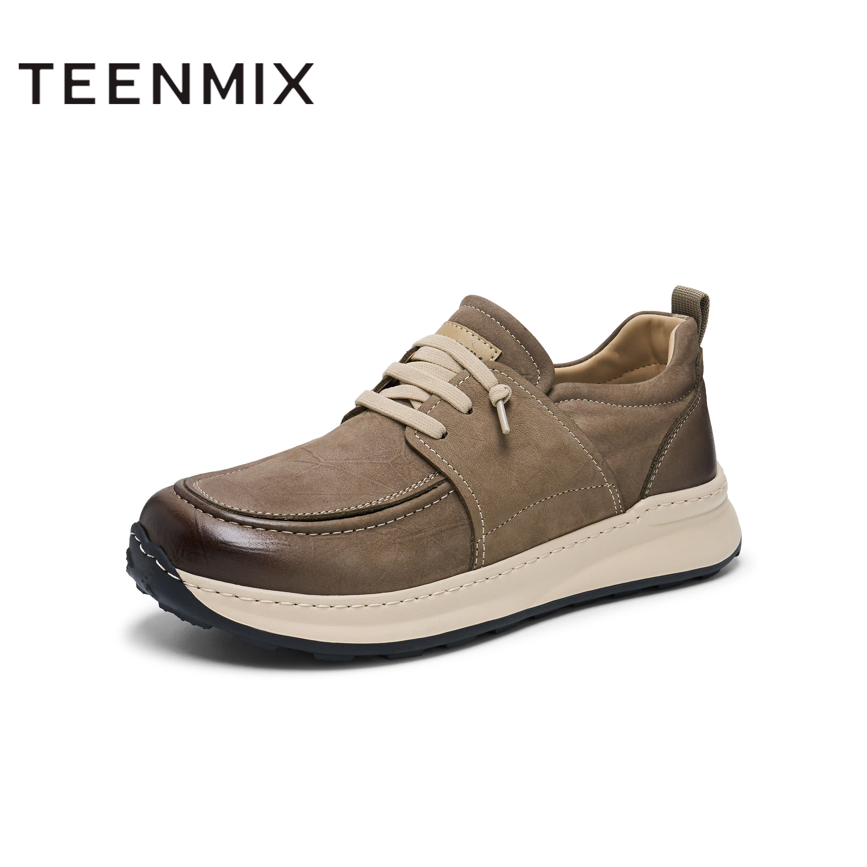 天美意牛皮男鞋厚底布鞋休闲皮鞋运动鞋男士软底鞋子2025冬季新款