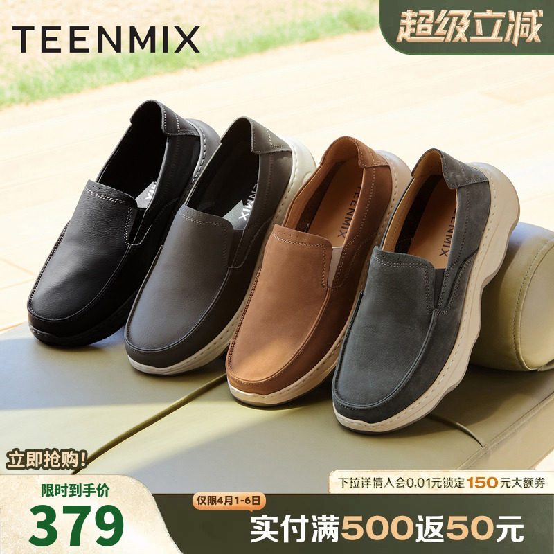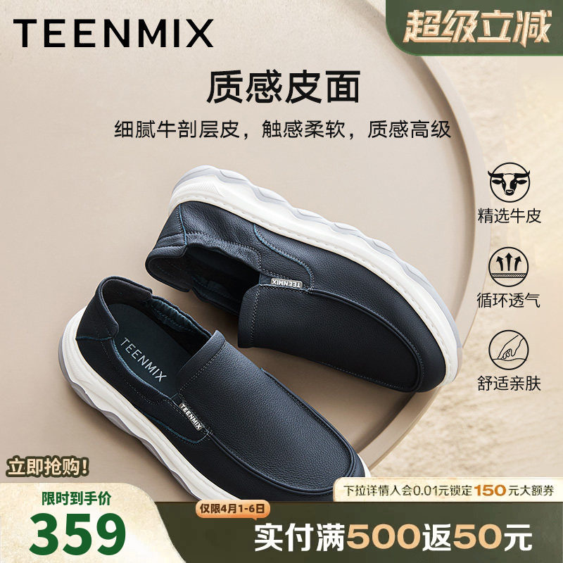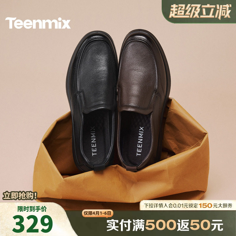 天美意真皮休闲皮鞋羊皮爸爸鞋男士软底一脚蹬男鞋男2025冬季新款
