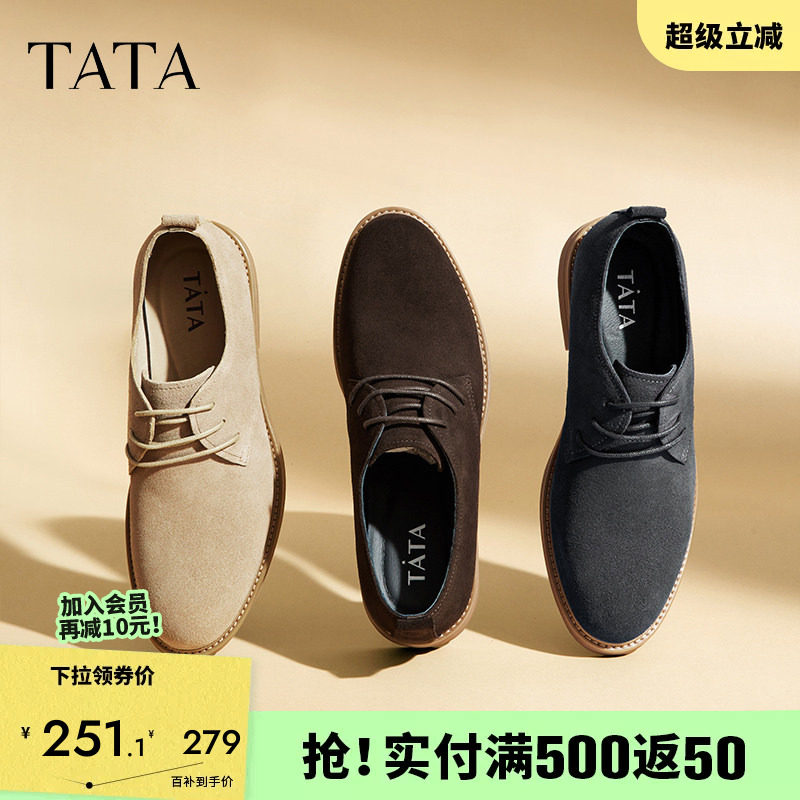 TATA他她商务休闲皮鞋男鞋英伦正装鞋反绒皮单鞋2025秋冬VEI01DM3