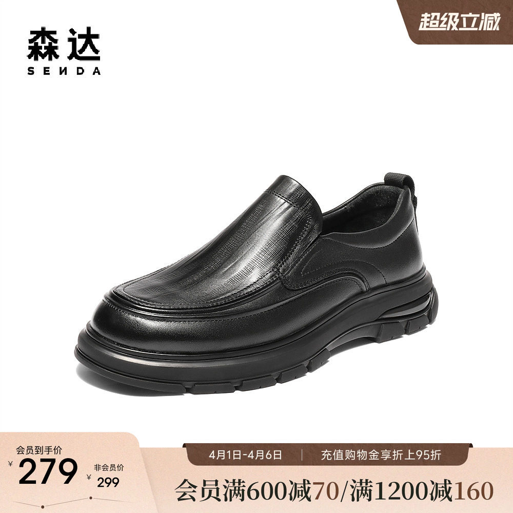 森达休闲皮鞋男2025冬新舒适一脚蹬厚底商务休闲鞋QJ040DM5