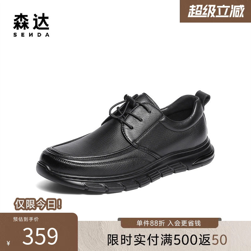 森达休闲皮鞋男士冬新商场同款头层牛皮厚底商务休闲皮鞋1ZE01DM5