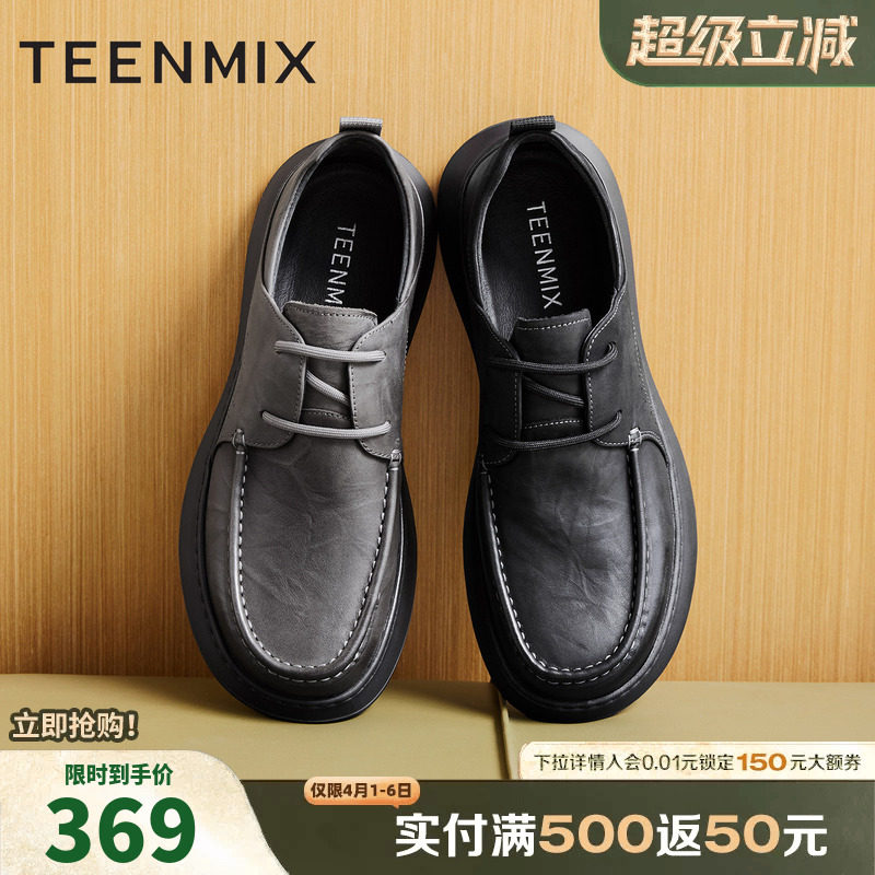 天美意休闲袋鼠鞋牛皮皮鞋男鞋户外厚底商务男士鞋子2025冬季新款
