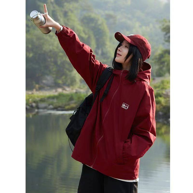 韩系港风冲锋衣外套女学生春秋长袖连帽宽松百搭休闲工装夹克上衣