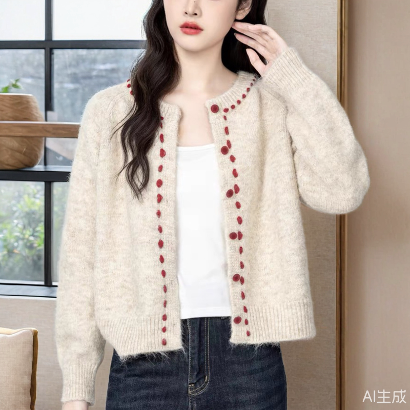 软糯圆领毛衣外套女学生春秋冬季新款设计感外穿慵懒针织开衫上衣