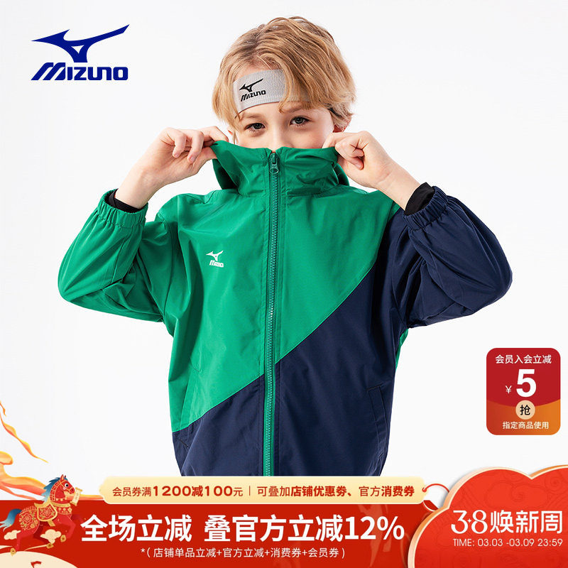 Mizuno美津浓KIDS儿童外套防泼水春秋新款男女中大童连帽防风学生