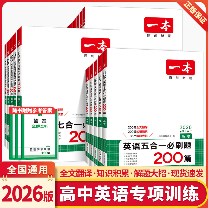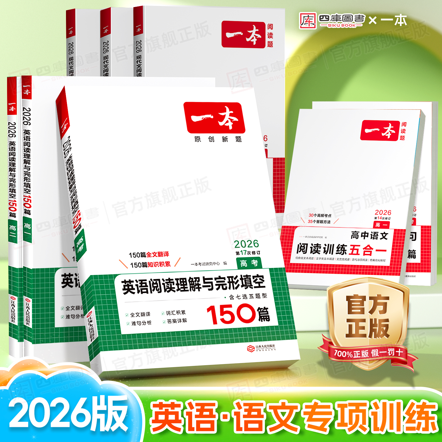 2026版一本高中英语阅读理解与完形填空五合一必刷题高一高二高考英语语法填空七选五听力训练语文现代文阅读100篇古诗文专项训练