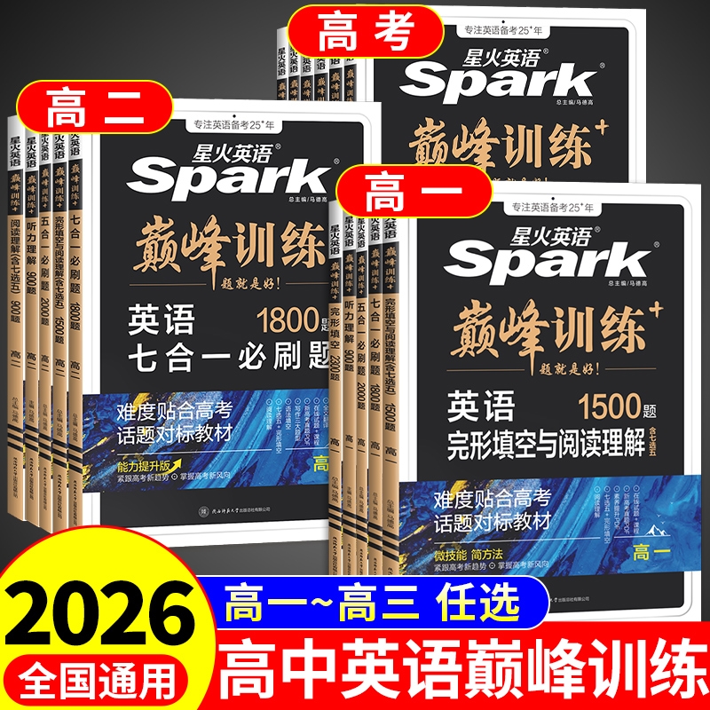 星火英语高中五合一2026新高考巅峰训练必刷题高一高二高三高中英语阅读理解与完形填空语法填空听力七选五专项训练七合一教辅资料