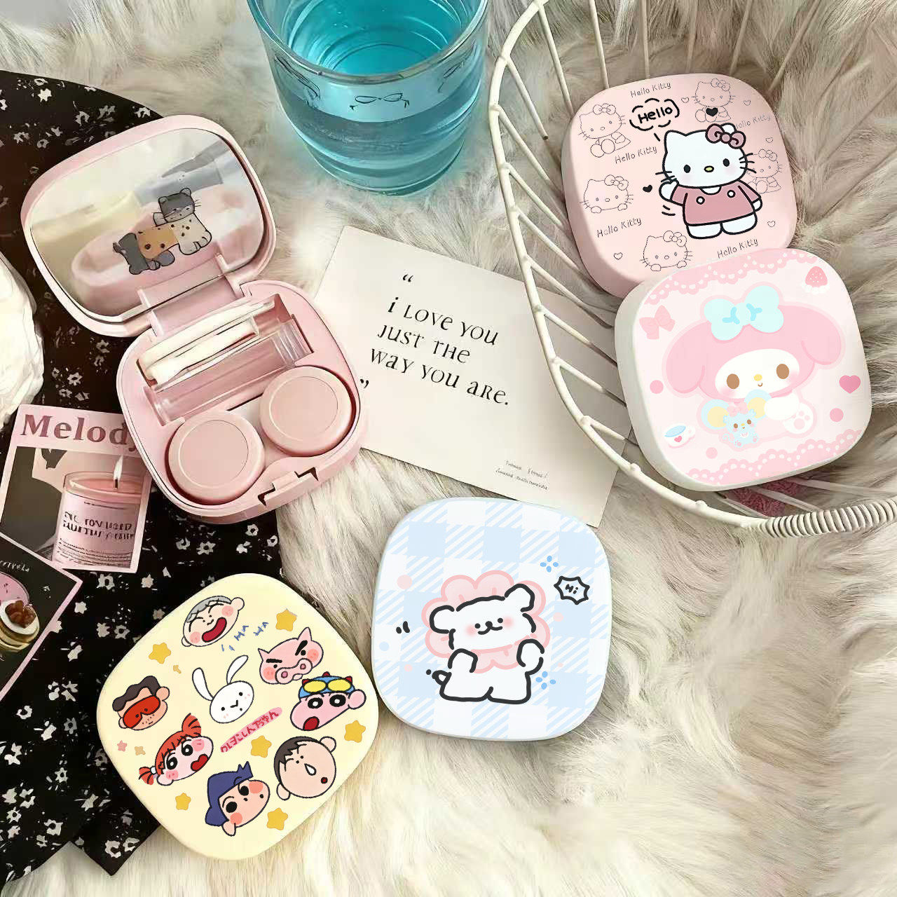可爱卡通隐形眼镜盒女便携小巧美瞳盒收纳护理盒防漏双联伴侣盒子
