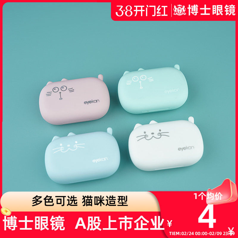 eyekan隐形近视眼镜盒猫咪少女心ins风伴侣盒美瞳时尚护理收纳盒