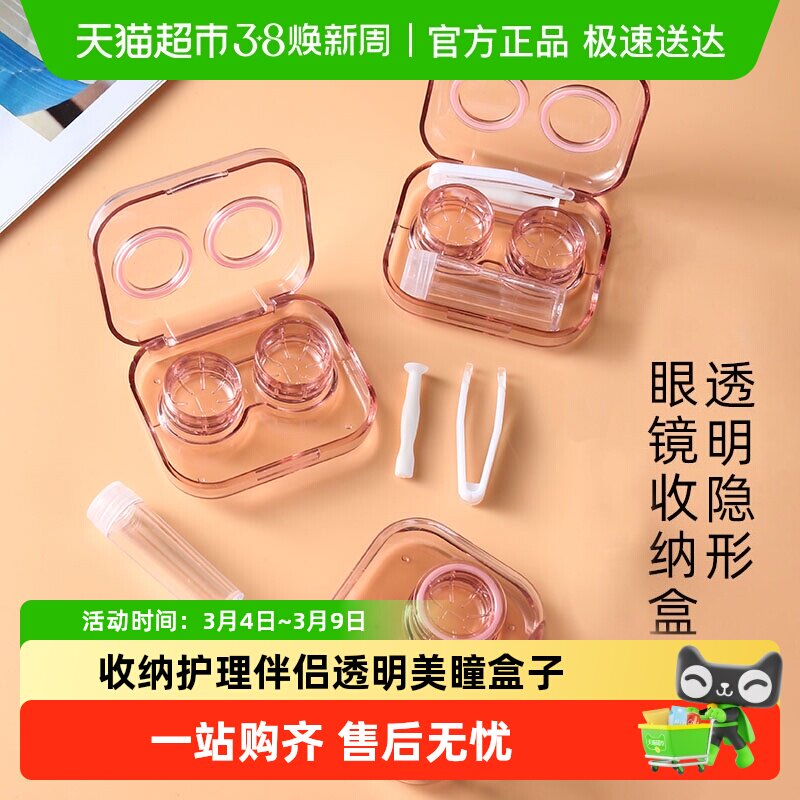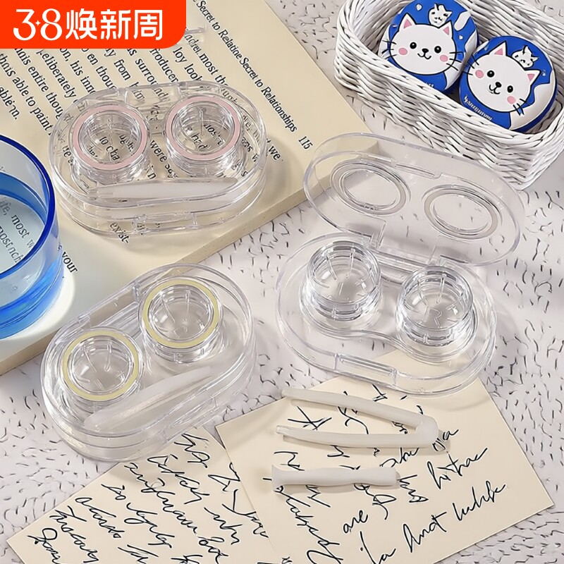 隐形眼镜盒美瞳收纳盒子可爱便携式多副护理盒双联盒伴侣盒大容量