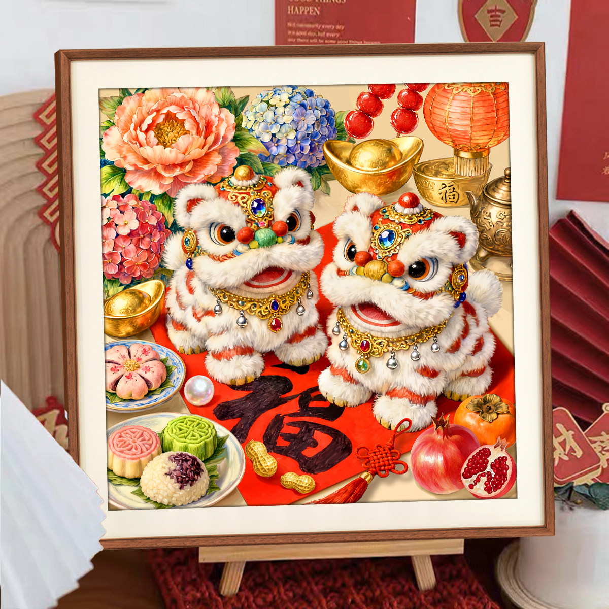 醒狮如意十字绣2026新款客厅新年装饰喜庆纳福寓意好简单手工刺绣