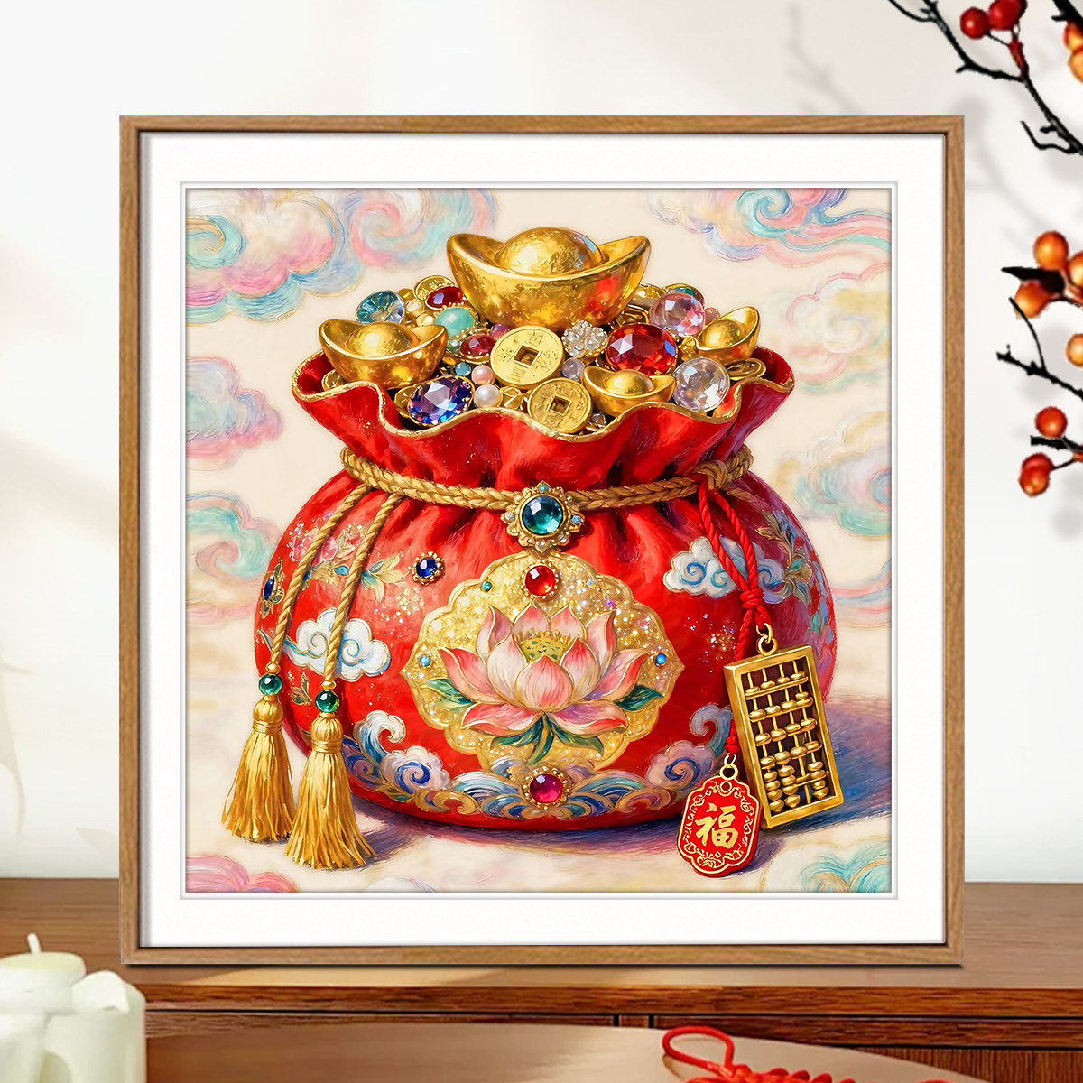 多宝福袋十字绣2026新款高级客厅招财进宝简单现代年轻人手工刺绣