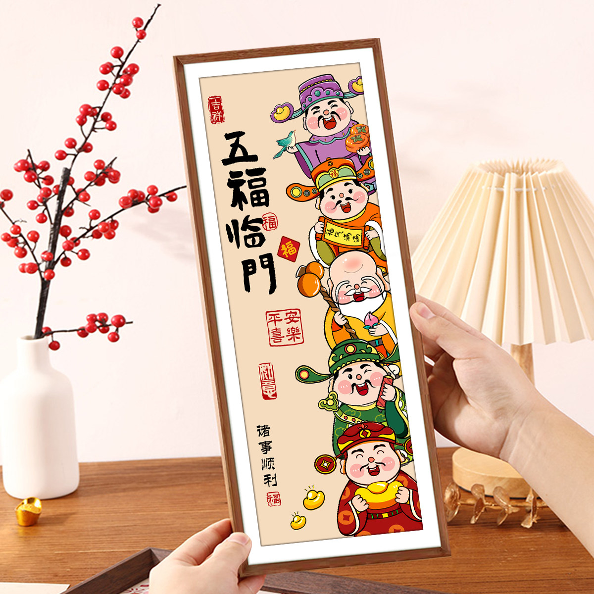 五福临门十字绣2026新款福禄寿喜财神客厅竖版年轻人喜庆手工刺绣