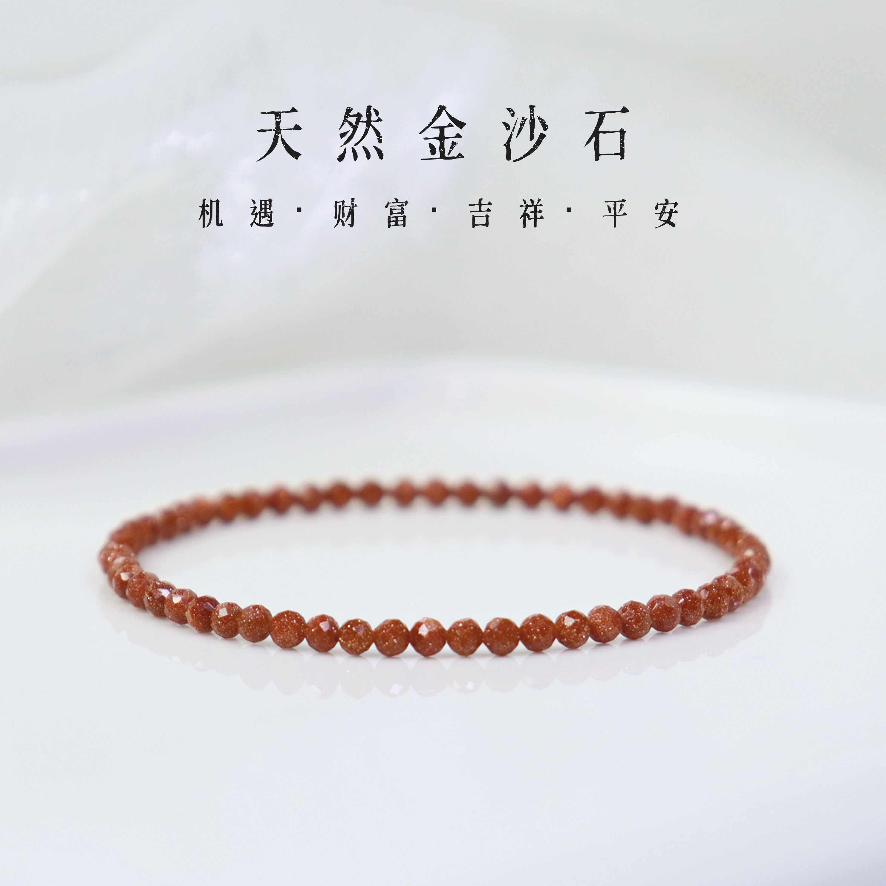 天然招财金沙石手链3mm极细金星石手串小众百搭金色闪耀原创设计