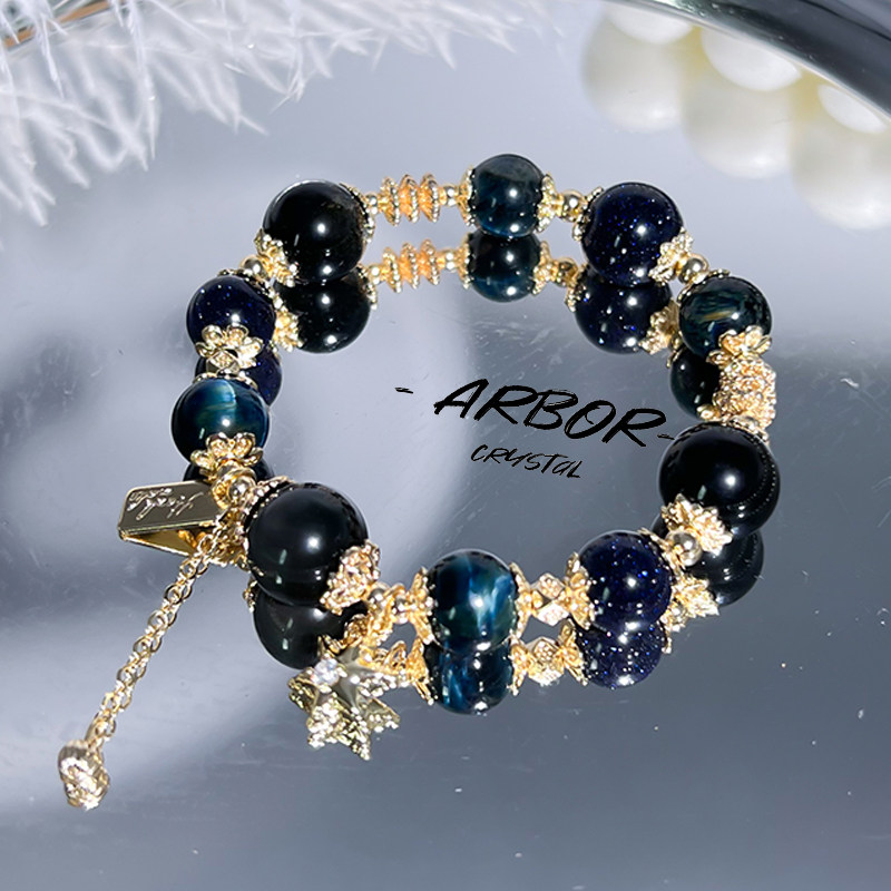 ins星月光乌金暗黑曜石蓝砂石陨石能量灰水晶手链女小众手串礼物