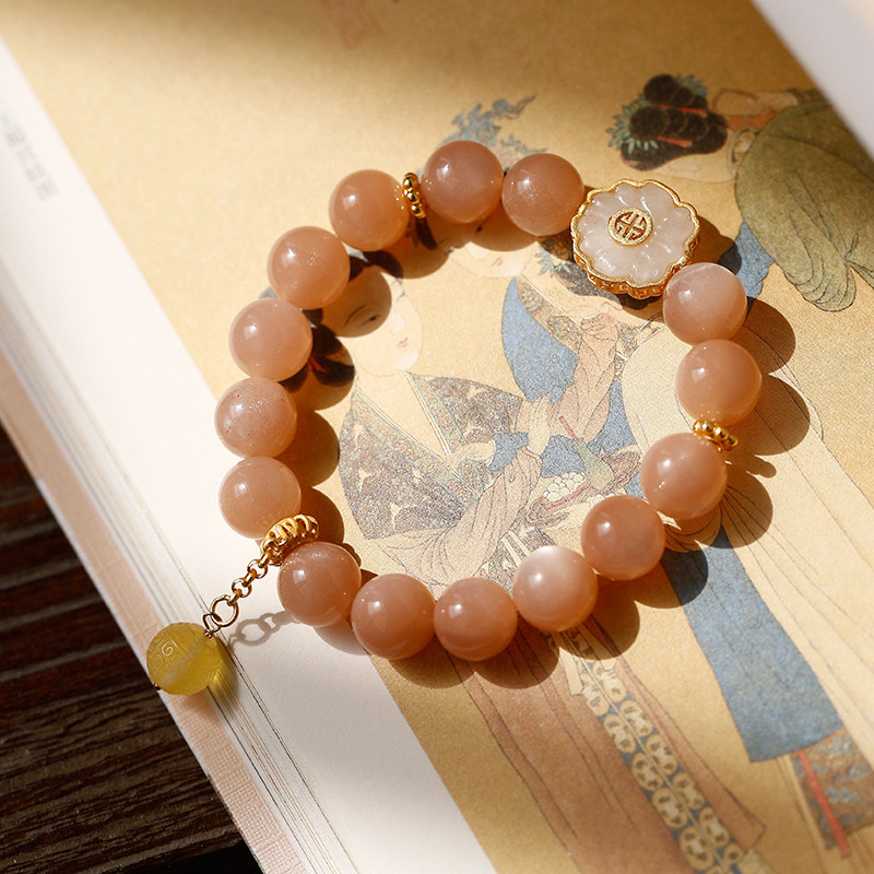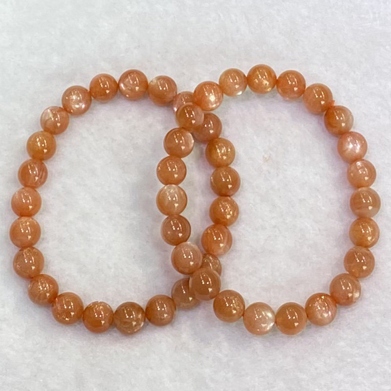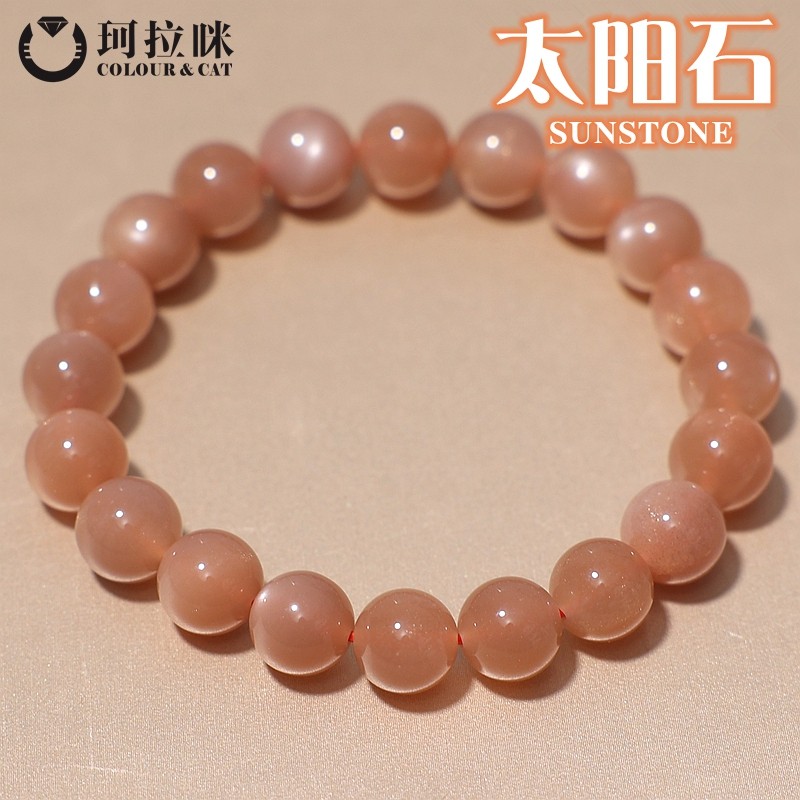 天然橙红太阳石手链男女学生日光石金沙斜长石猫眼石水晶手串饰品