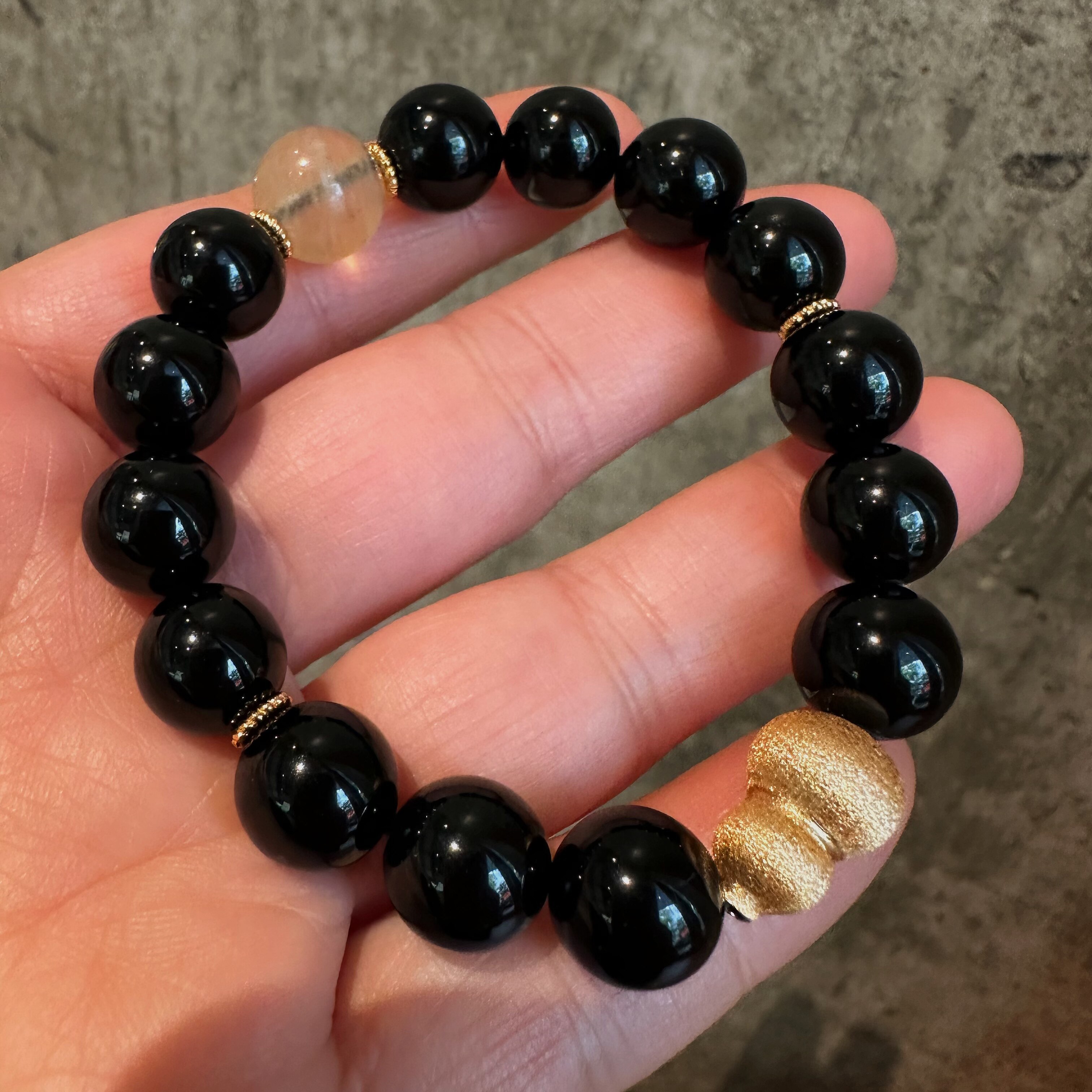 小众复古蓝砂石拉丝葫芦手串 S925纯银黑玛瑙黄水晶葫芦串珠手链