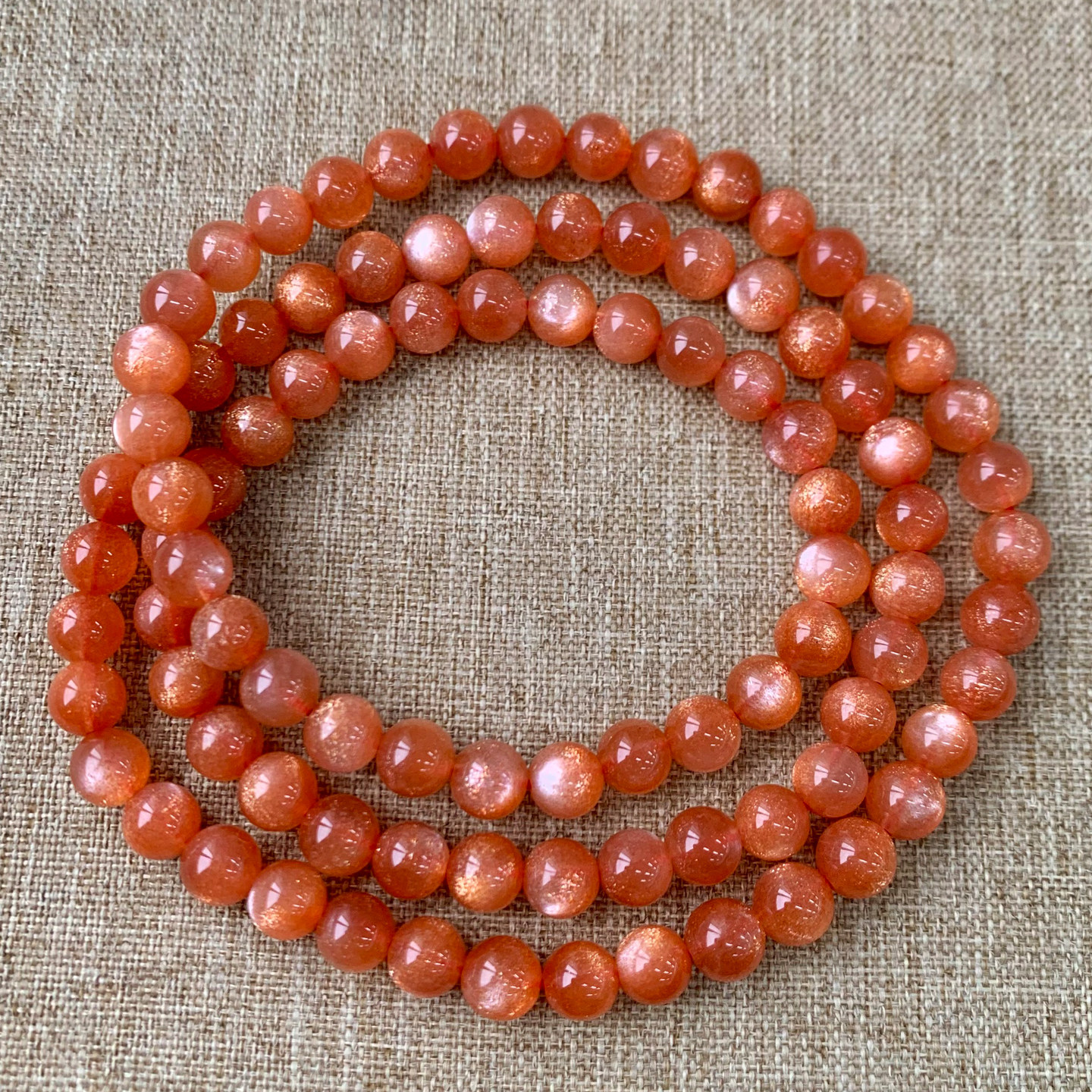 天然金沙太阳石三圈手链橙色日光石水晶手串男女生送礼物饰品情侣