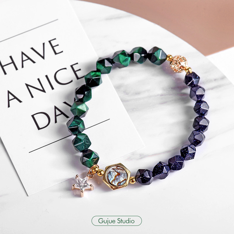 古觉工作室切面绿虎眼石蓝砂石鲍鱼贝手串手链男女饰品礼物[一半]