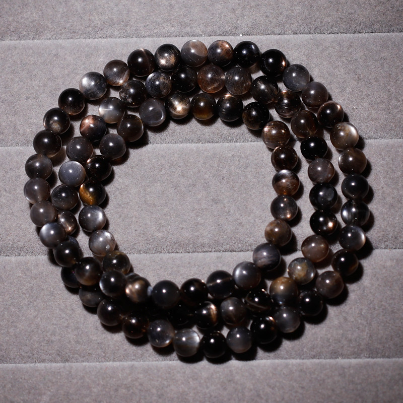 天然星辉骨干手链星光猫眼金沙日光石黑水晶手串时尚饰品送礼物女