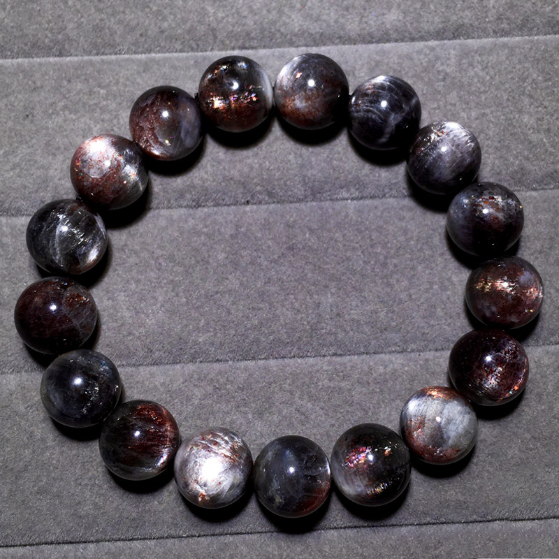 天然星辉骨干长石单圈手链黑水晶金沙日光石手串时尚饰品礼物男女