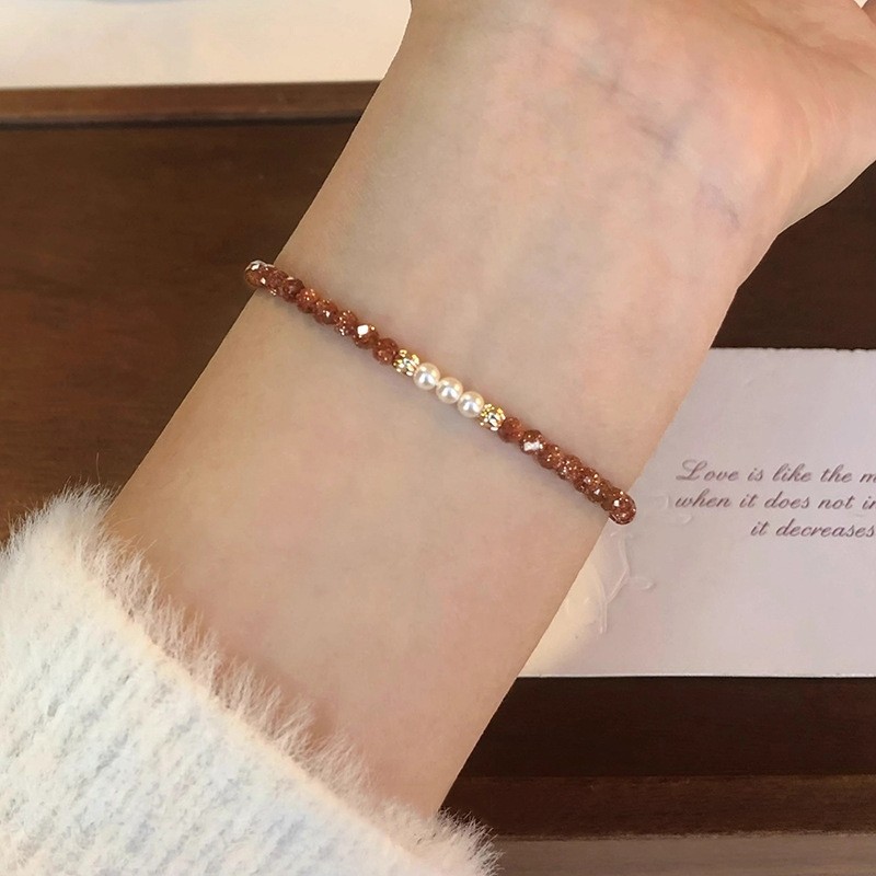 中国风高级感星空蓝砂石手链女天然淡水珍珠百搭手串简约时尚新款