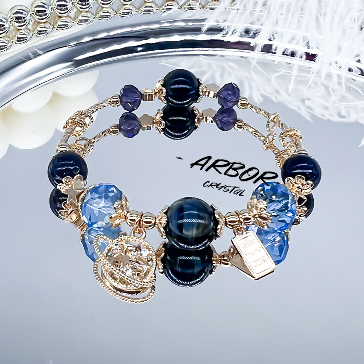 【隐藏·隐月】蓝砂石爆晶情侣手链原创设计小众百搭简约手工礼物
