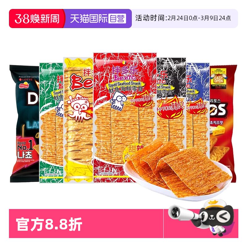 拌多乐鱿鱼片泰国进口bento辣条海鲜零食辣鱼片辣味解馋即食超辣