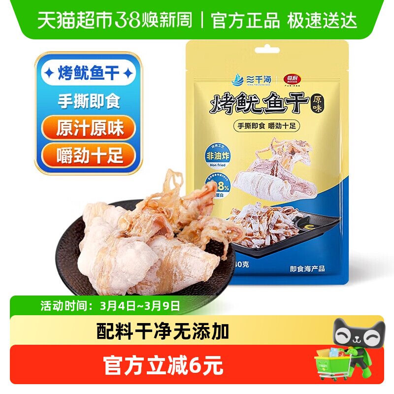 三千海烤鱿鱼干40g海鲜下酒菜即食手撕鱿鱼片无添加孕妇小吃零食