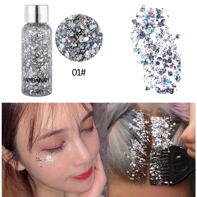 人体面部彩绘闪粉演出舞台妆表演出金色银色亮粉头发免胶亮片啫喱