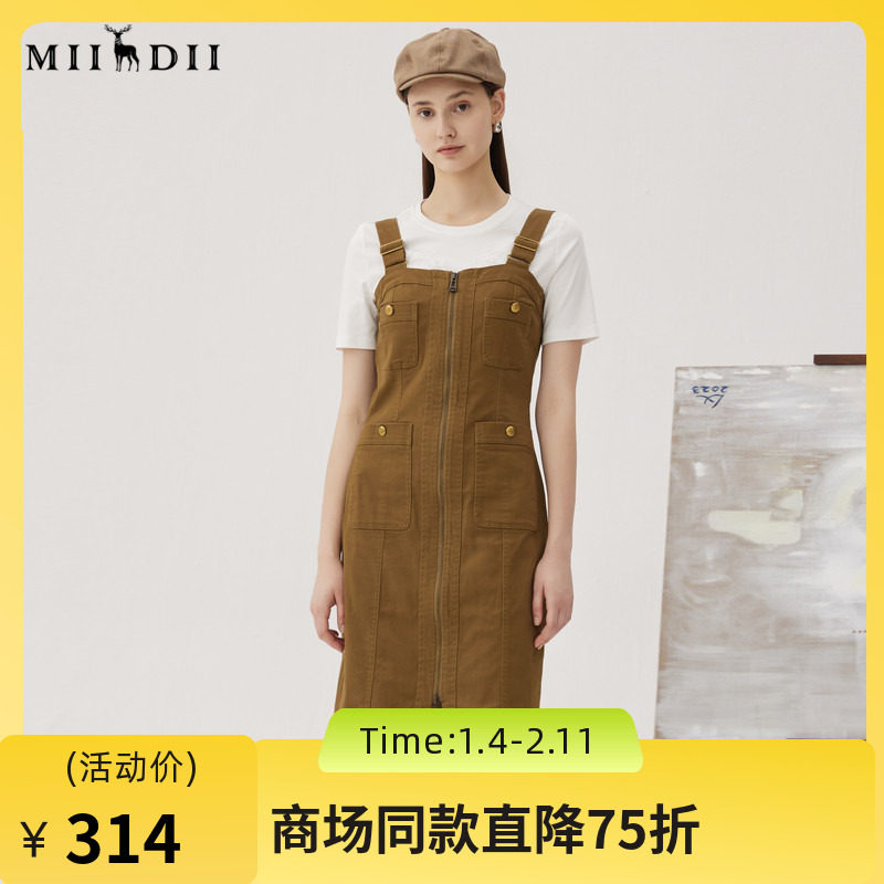 谜底背带裙女秋款时尚帅气猎装感修身中长款连衣裙247ML5011