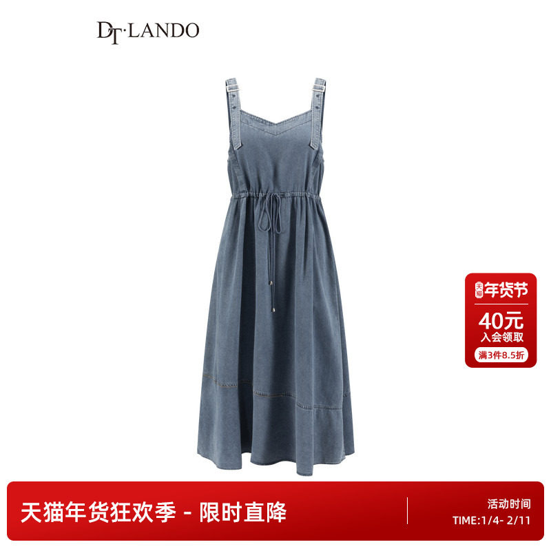 DTLANDO夏季女装收腰时尚显瘦百搭牛仔背带裙中长款无袖连衣裙子
